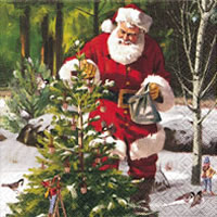 Santa im Wald mit Rehen