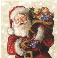 Santa mit Paket & Spielsachen im Sack