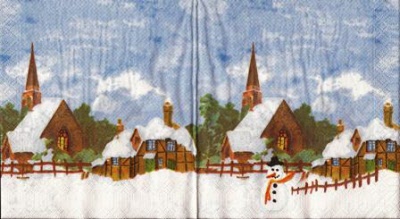 Schneemann vor Dorf