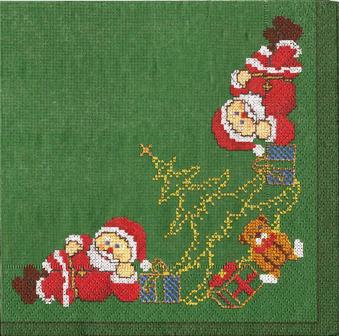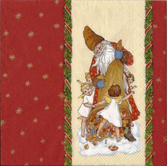 2 x Santa, 2 x Kinder am Weihnachtsbaum